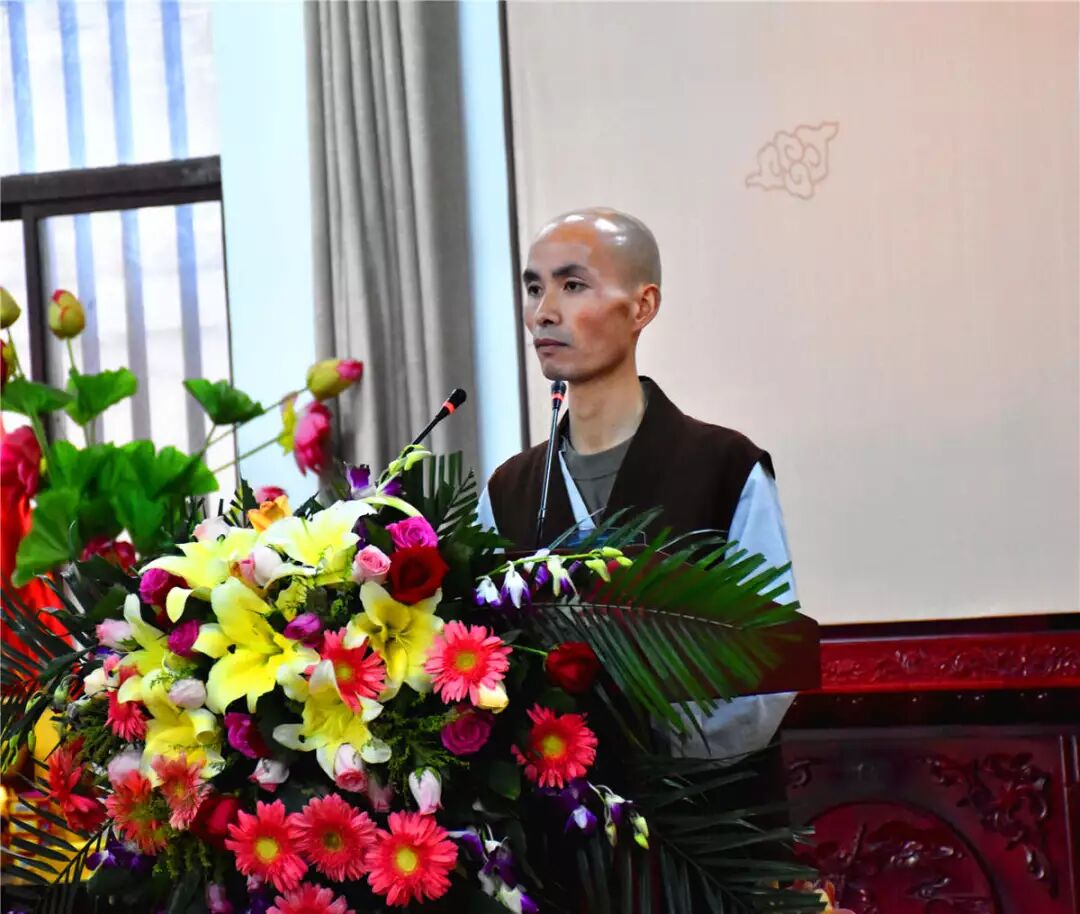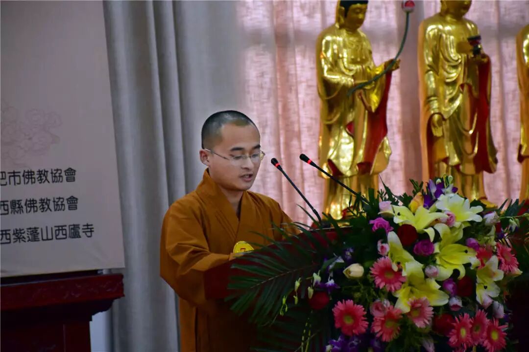 佛协副会长、鼓山寺方丈智文法师代表市佛教协会致辞,智文法师说:合肥紫蓬山空气清新,环境优美,在界心法师的多年努力下,如今的西庐寺已经打造成为一座远近闻名的大型丛林。希望各位法师珍惜这次学习交流的良好平台,结合时代特色、发挥各自才能讲经说法,以优异的成绩入选省、全国的讲经交流。